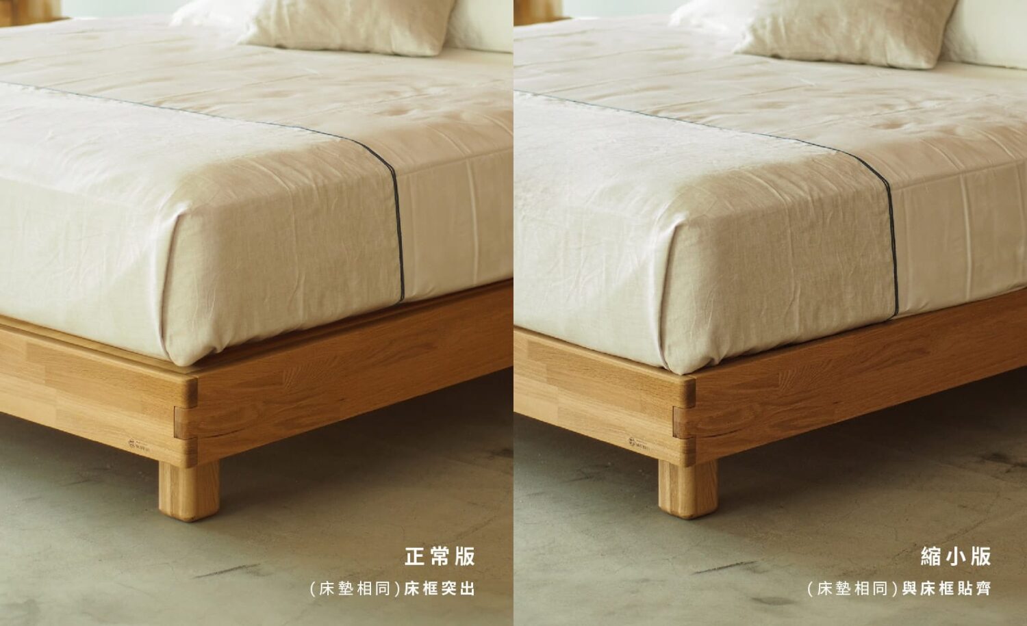 *床架客製床底加高(放置床底抽盒需求者)或其他訂製需求,請點選➤床架加工。